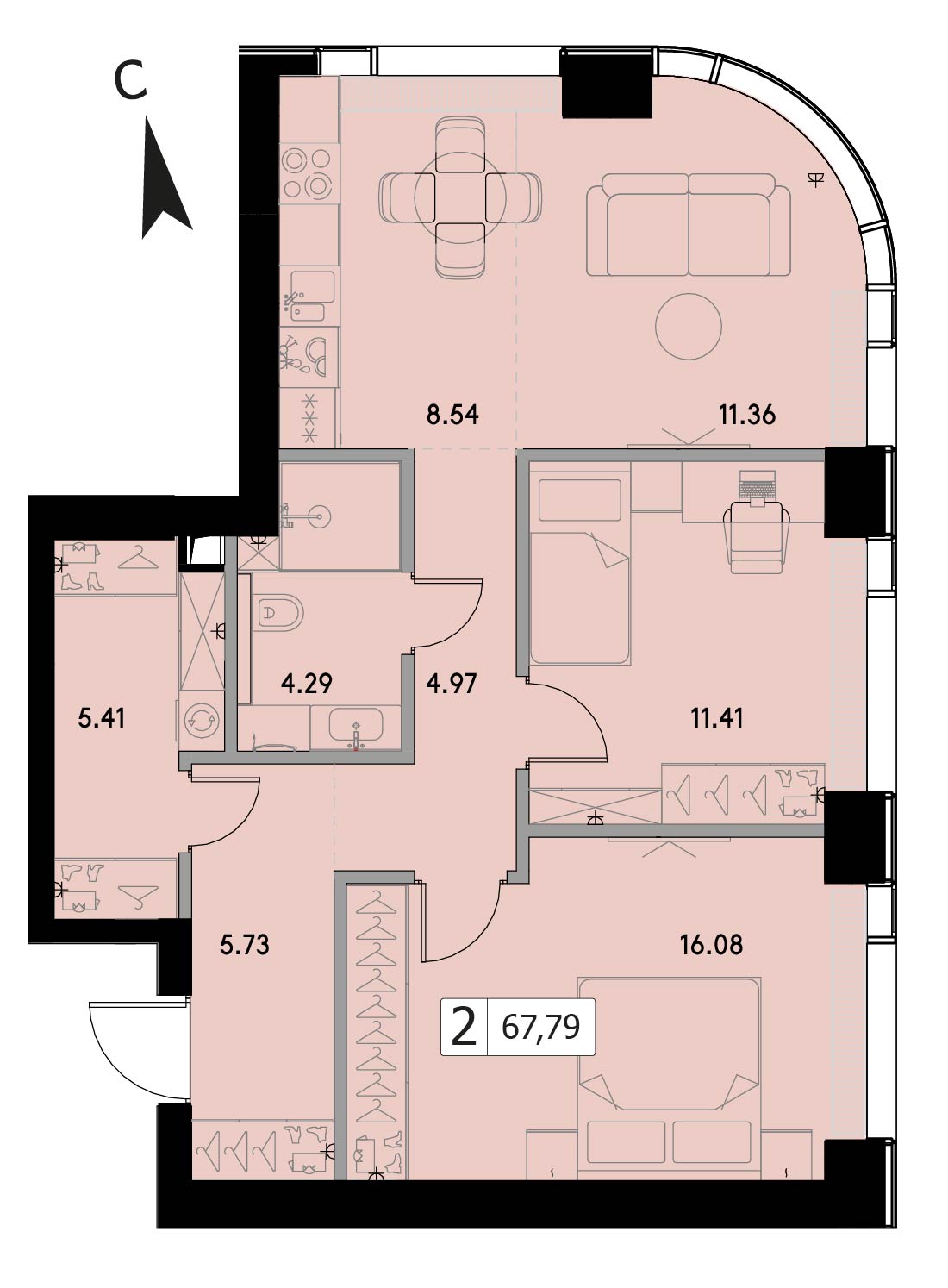 Двухкомнатная квартира 65.47 м², 27 этаж, ЖК «ВЕЕР» (VEER)