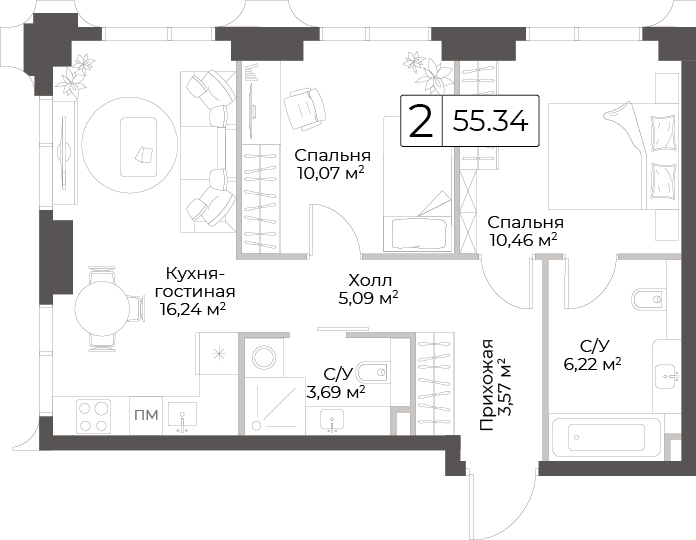 Комфортная однокомнатная квартира квартира площадью 57.3 м² без отделки. Лот расположен на 8 этаже, корпуса 1 Клубный дом «Гранд Фили».Комплекс находится по адресу: г. Москва, Большая Филевская, 2, срок сдачи 2028г.. Это соединение удобной инфраструктуры городской застройки и зеленых зон отдыха.