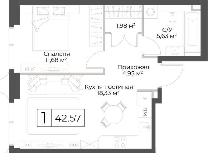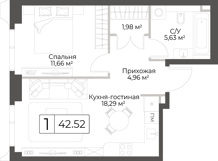 Однокомнатная квартира 46.32 м², 9 этаж, Клубный дом «Гранд Фили»