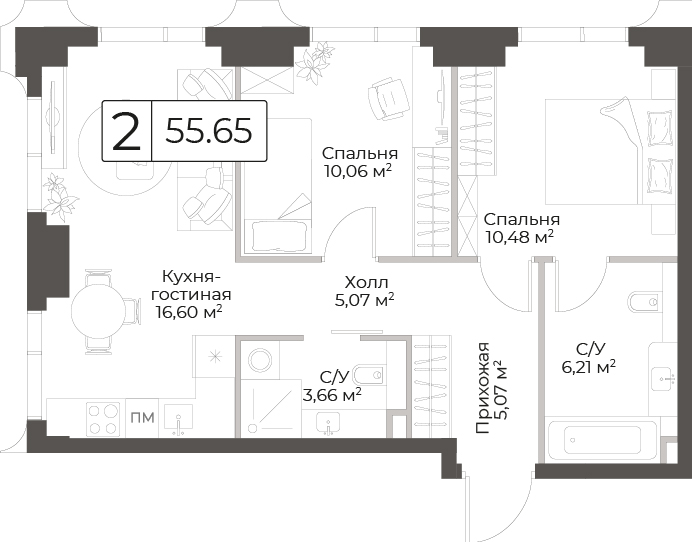 от 55.31 м2