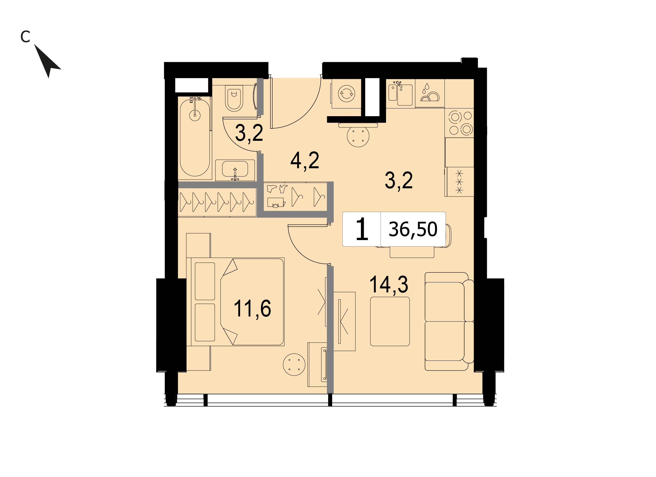 Однокомнатная квартира 38.1 м², 4 этаж, МФК «СЛАВА» (SLAVA)