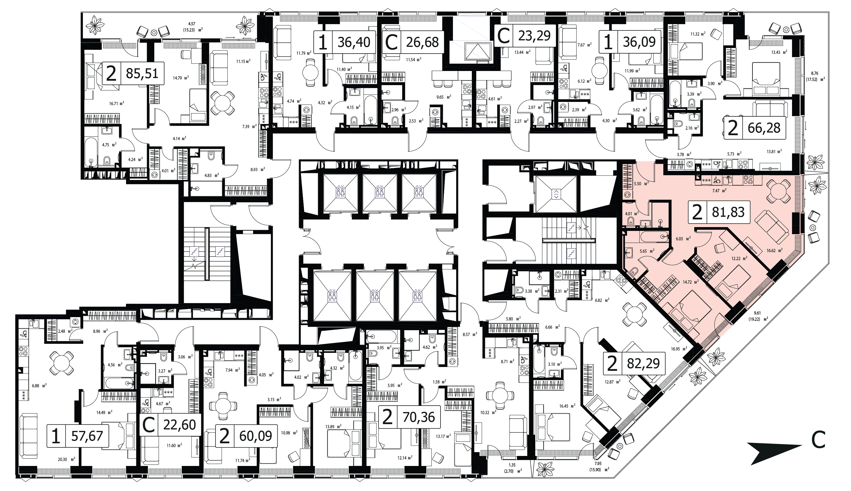 Двухкомнатная квартира 81.83 м², 8 этаж, ЖК «ДЖОЙС» (JOIS)