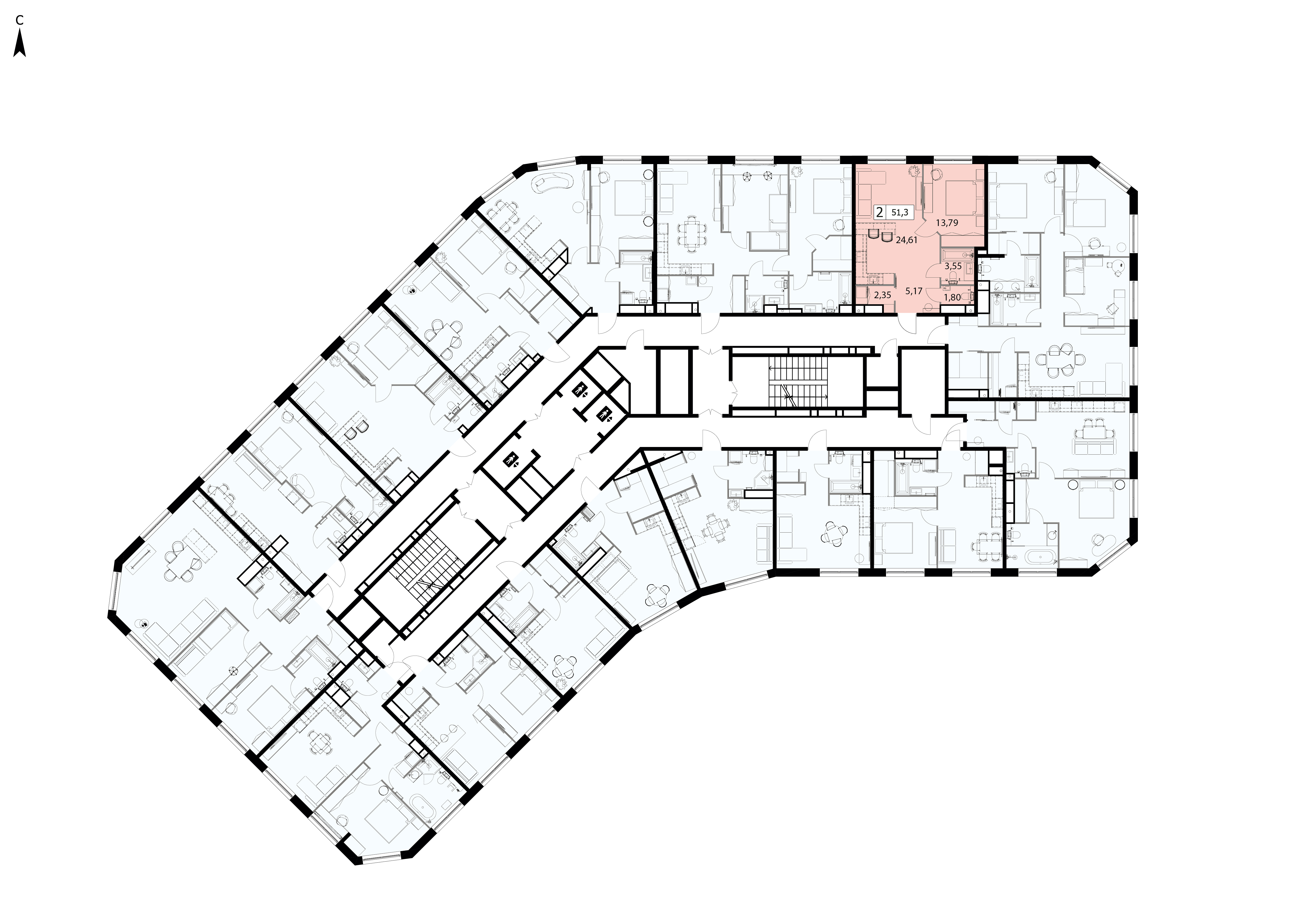 Двухкомнатный апартамент 51.27 м², 6 этаж, Клубный дом «ДЭ ОРО МИЛЛЕ» (D'ORO MILLE)