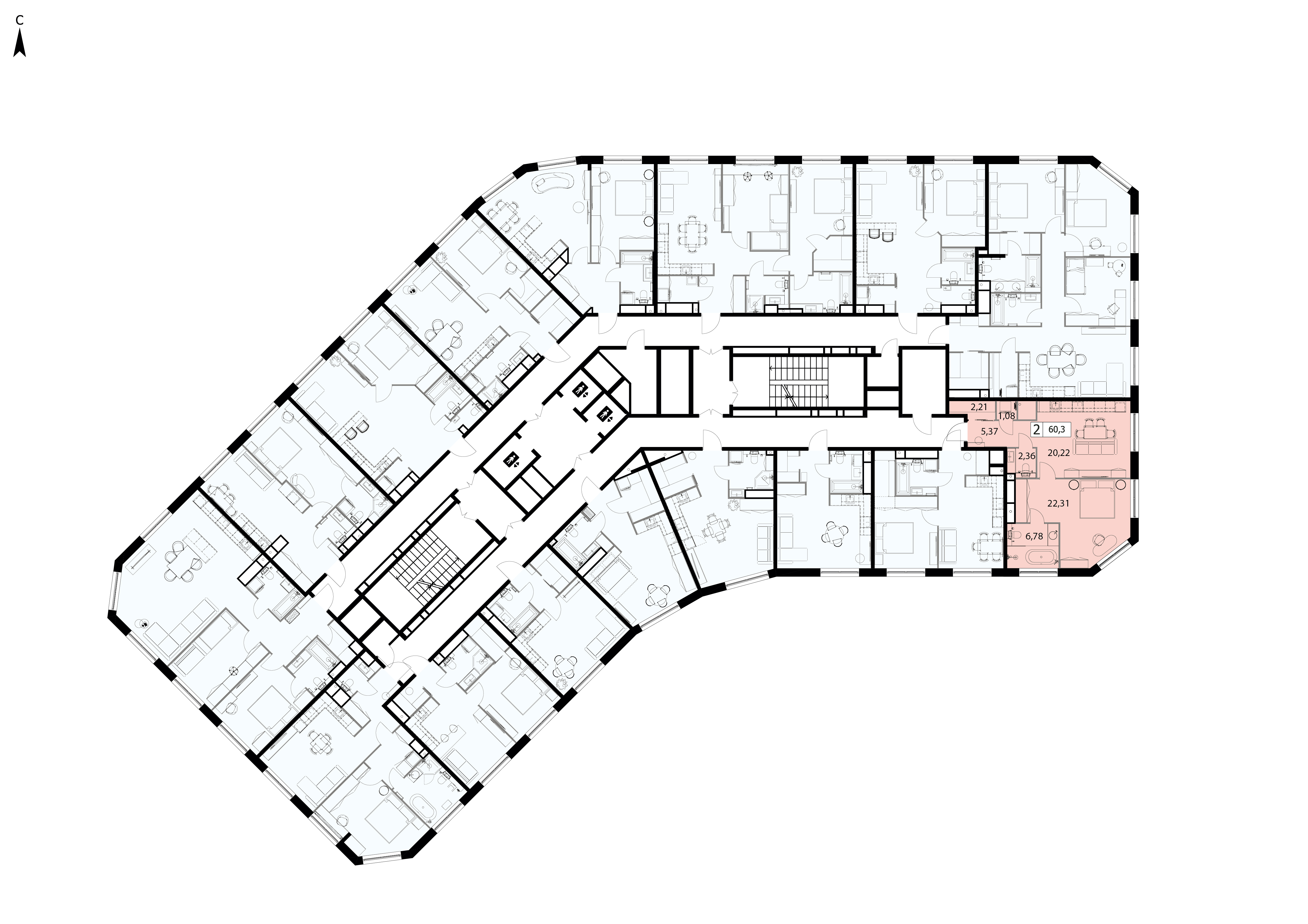 Двухкомнатный апартамент 60.33 м², 6 этаж, Клубный дом «ДЭ ОРО МИЛЛЕ» (D'ORO MILLE)