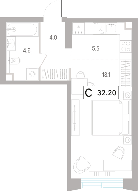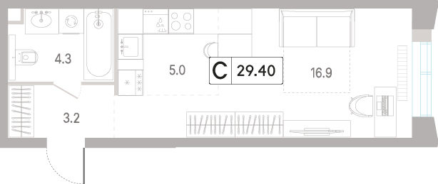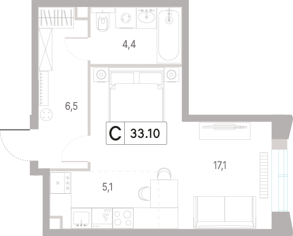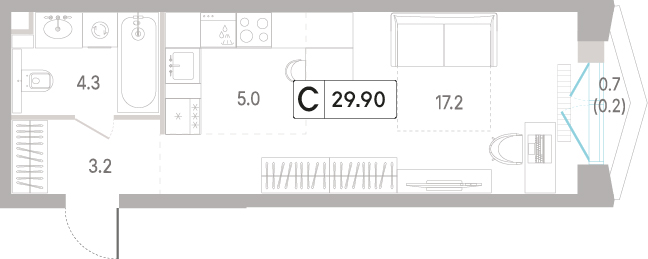 Студия 30.8 м², 3 этаж, ЖК «КОД Сокольники»