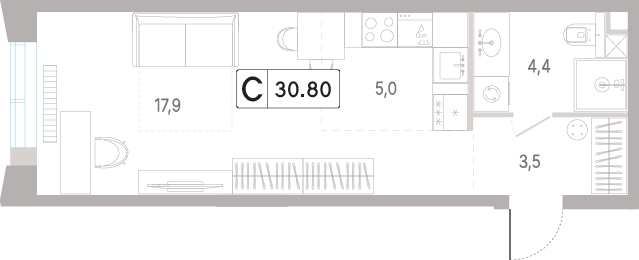 30.8 м²