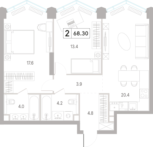 68.6 м²