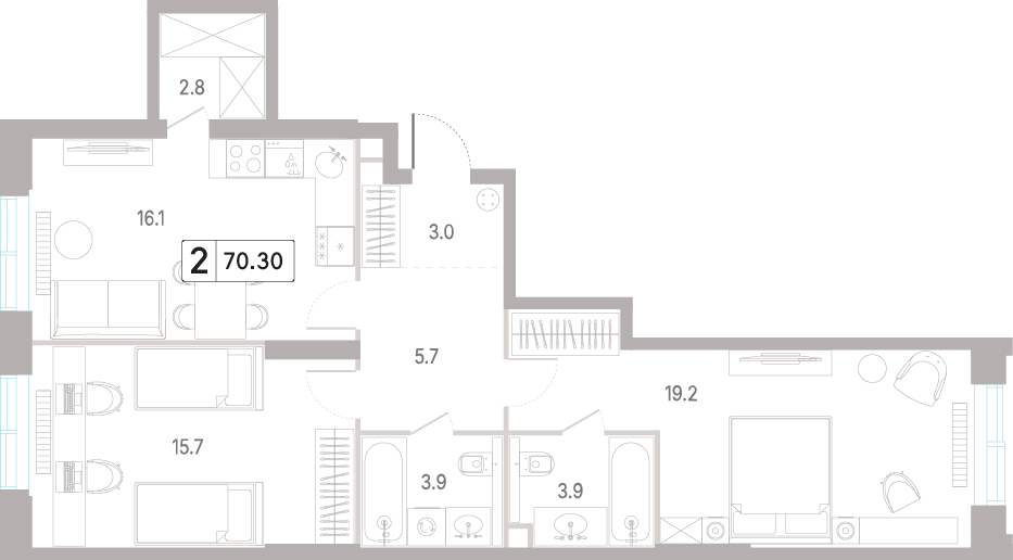 Двухкомнатная квартира 68.6 м², 8 этаж, ЖК «КОД Сокольники»