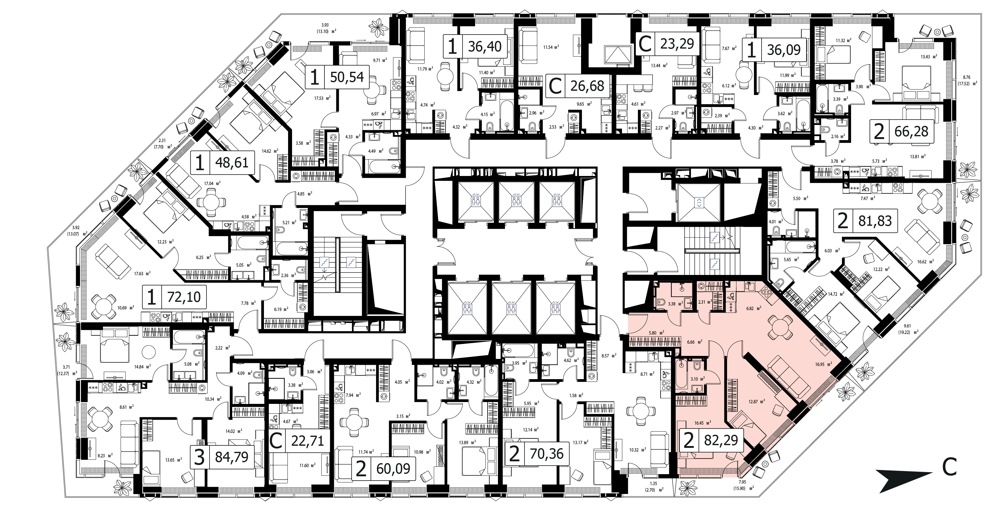Двухкомнатная квартира 83.65 м², 17 этаж, ЖК «ДЖОЙС» (JOIS)