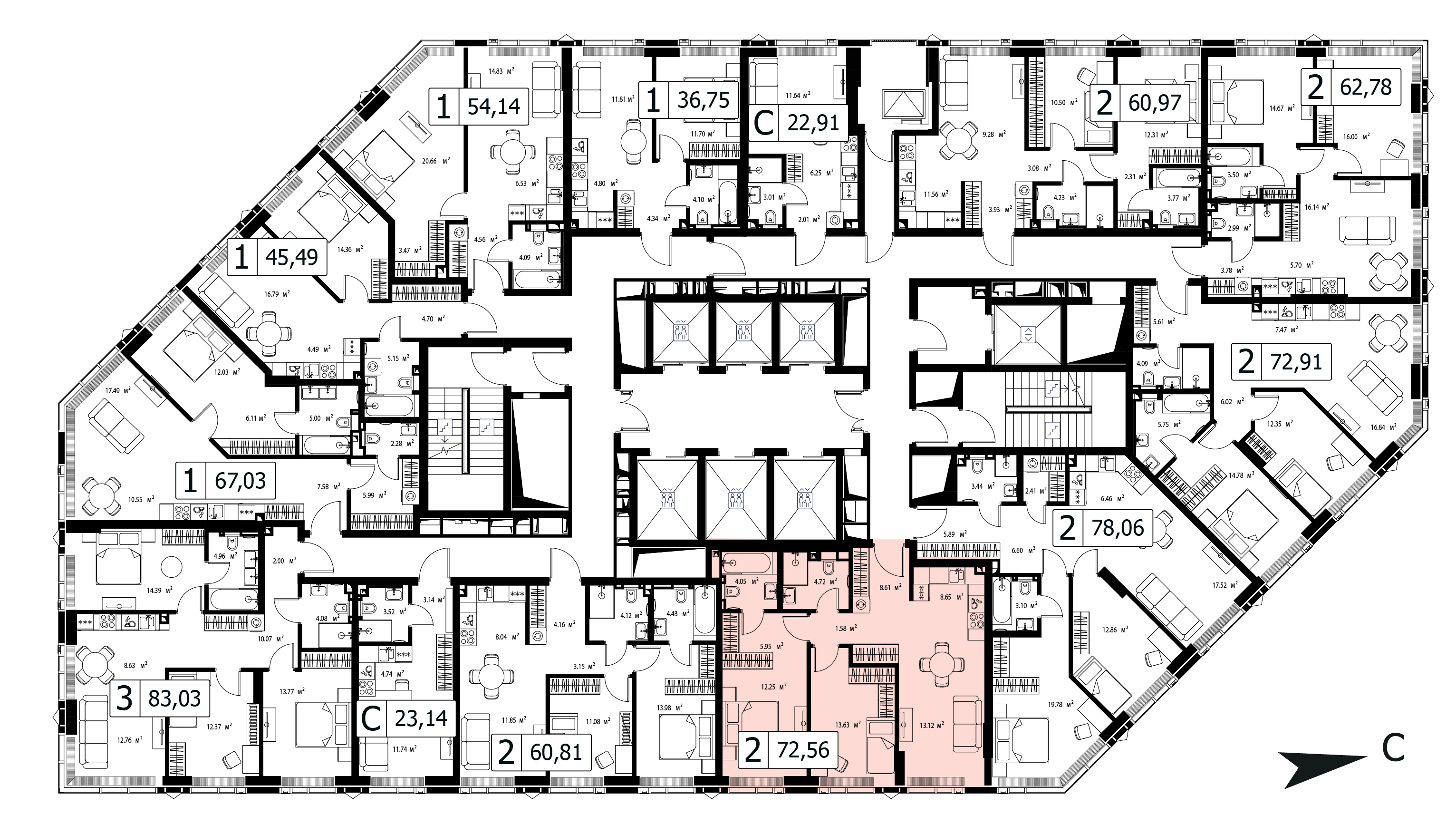 74.04 м²