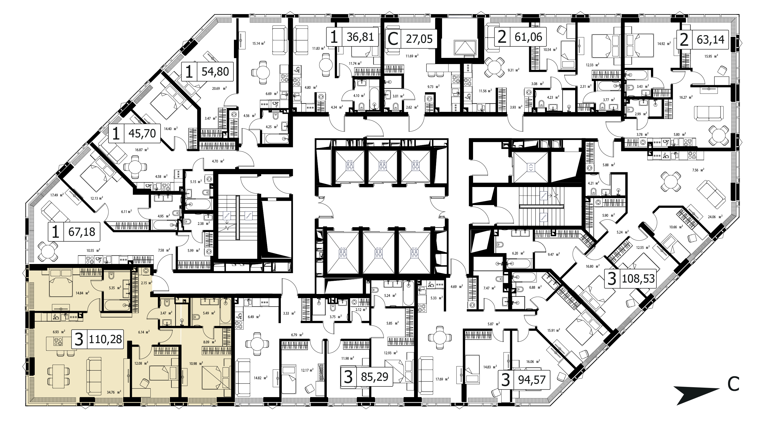 Трехкомнатная квартира 109.22 м², 52 этаж, ЖК «ДЖОЙС» (JOIS)