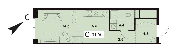 Студия 36 м², 22 этаж, ЖК «Нексус от Аквилон» (Nexus by Akvilon)