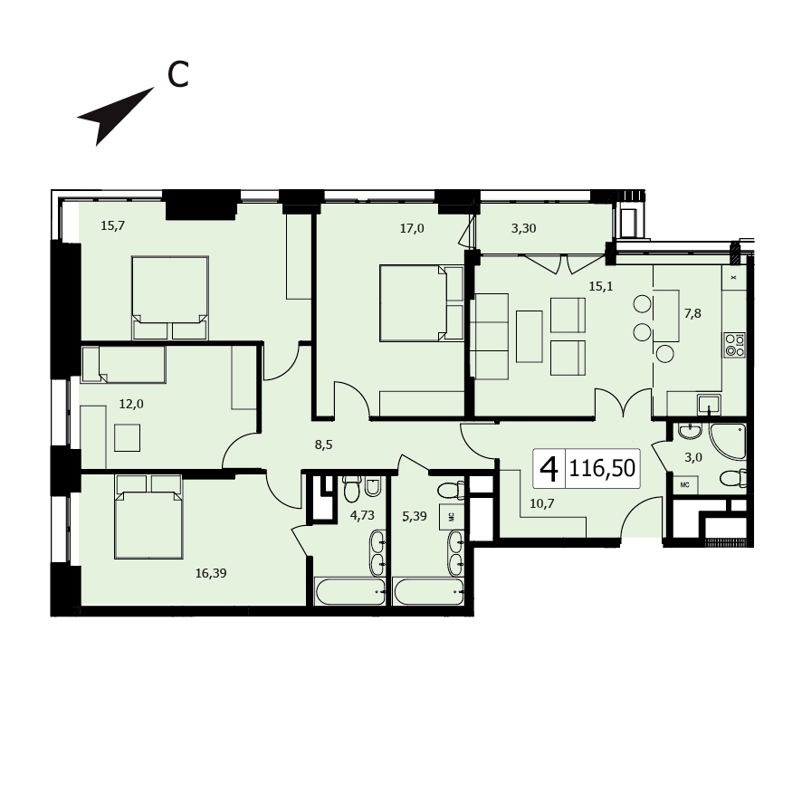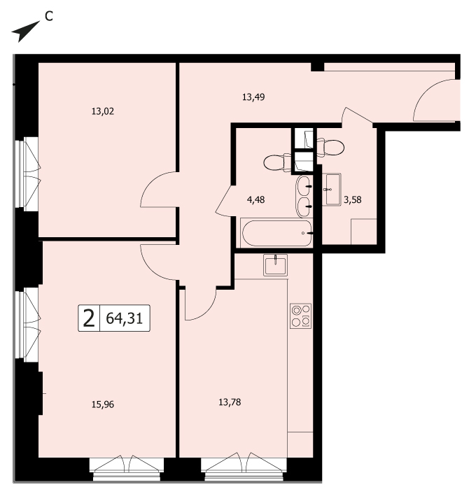 Двухкомнатная квартира 61.7 м², 2 этаж, ЖК «Твайс» (Twice)