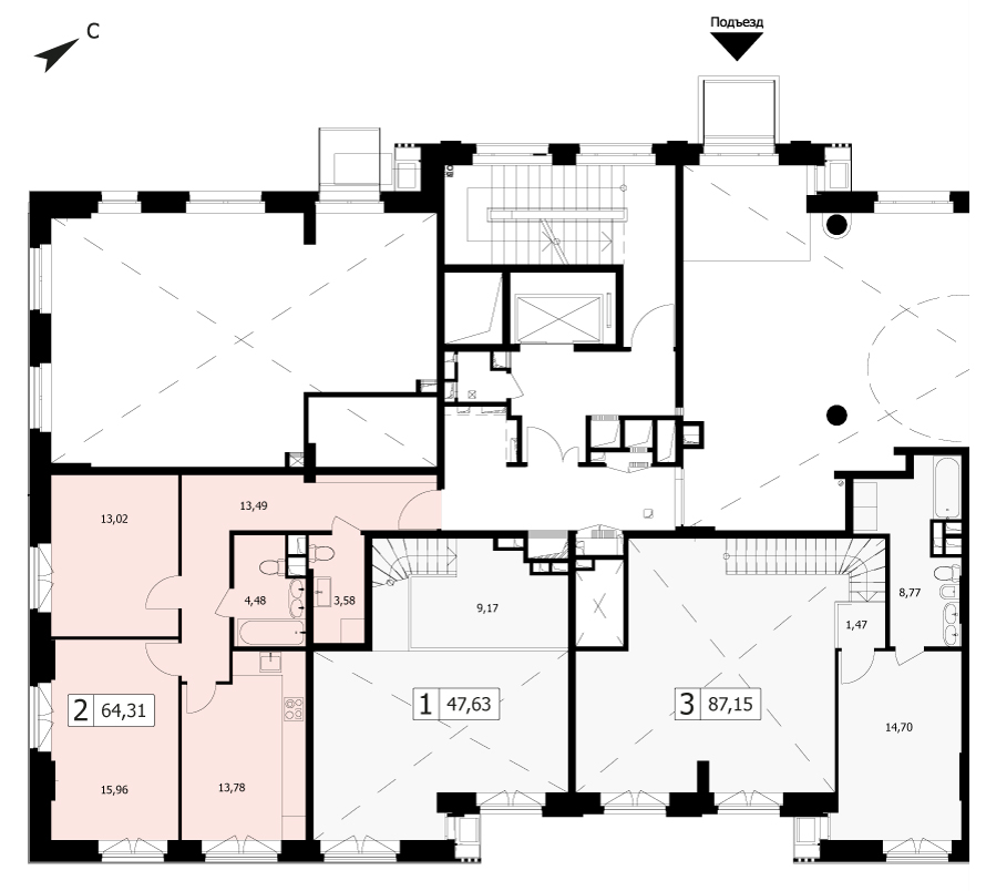 Комфортная двухкомнатная квартира квартира площадью 64.6 м² без отделки. Лот расположен на 2 этаже, корпуса 2 ЖК «Твайс» (Twice).Комплекс находится по адресу: г. Москва, 8. Это соединение удобной инфраструктуры городской застройки и зеленых зон отдыха.