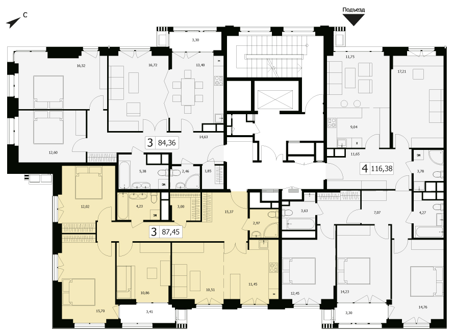 Трехкомнатная квартира 169.2 м², 8 этаж, ЖК «Твайс» (Twice)