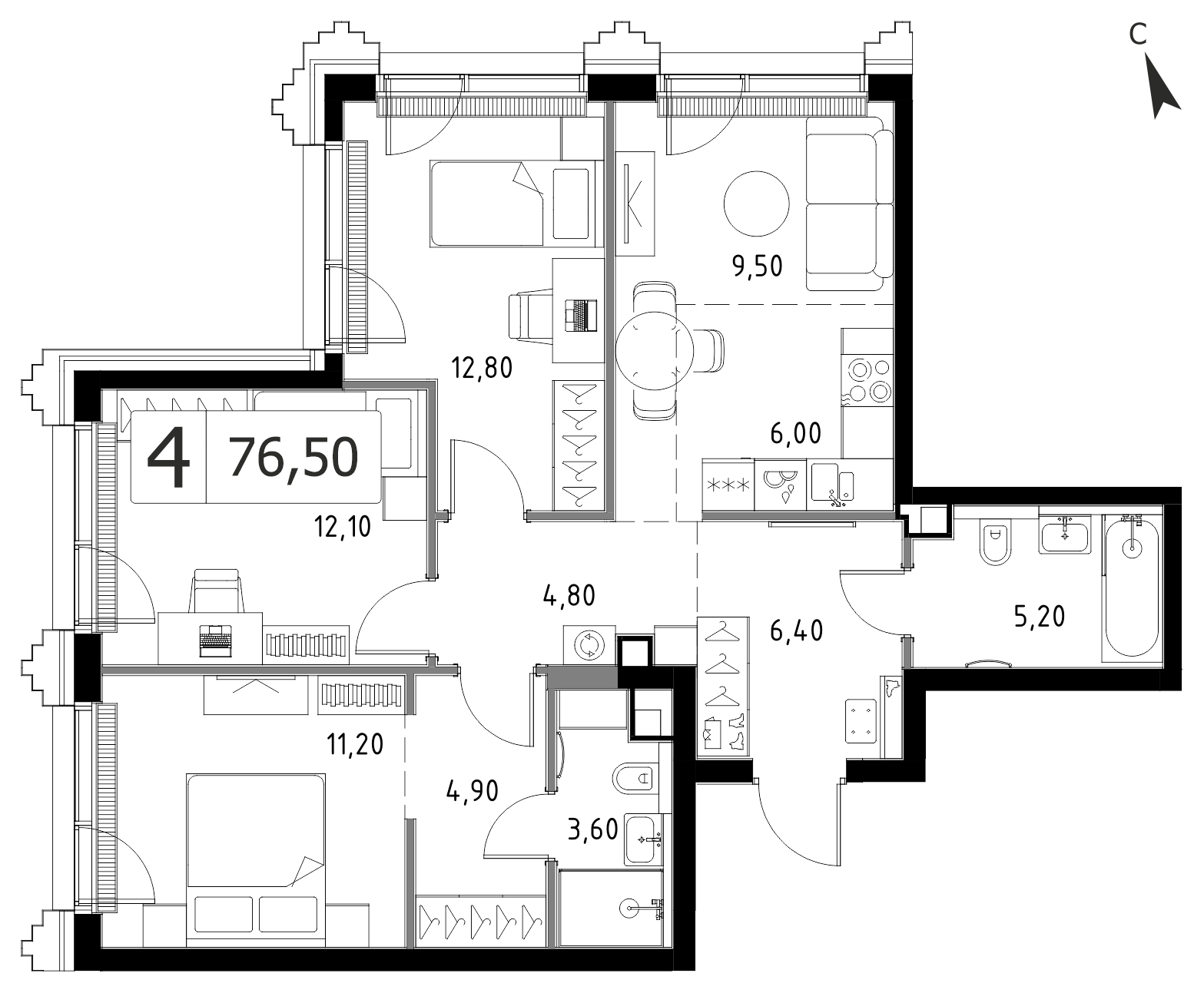 4 комн.