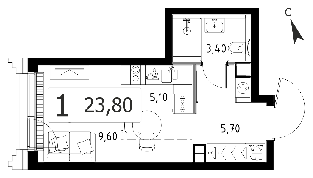 Однокомнатная квартира 22.5 м², 19 этаж, ЖК «СЕТ» (SET)