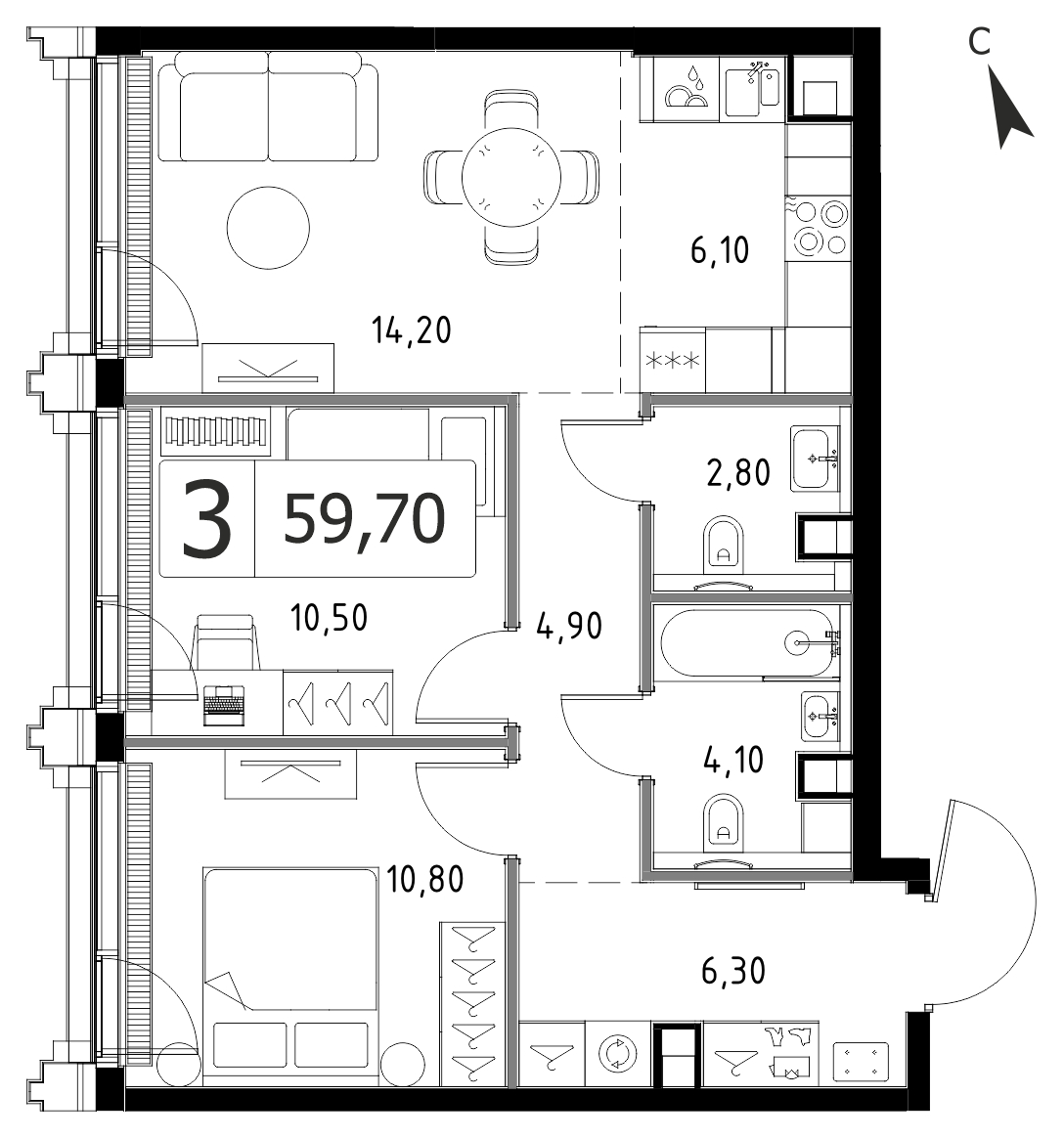 Двухкомнатная квартира 58 м², 34 этаж, ЖК «СЕТ» (SET)