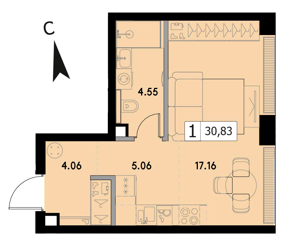 Однокомнатная квартира 26.6 м², 13 этаж, ЖК «ВЕЕР» (VEER)