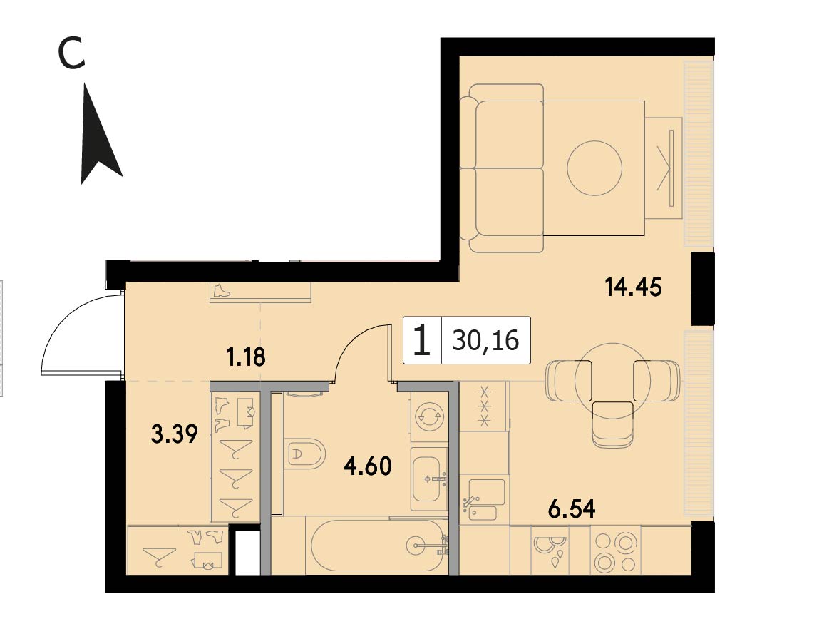 Студия 26.4 м², 19 этаж, ЖК «ВЕЕР» (VEER)