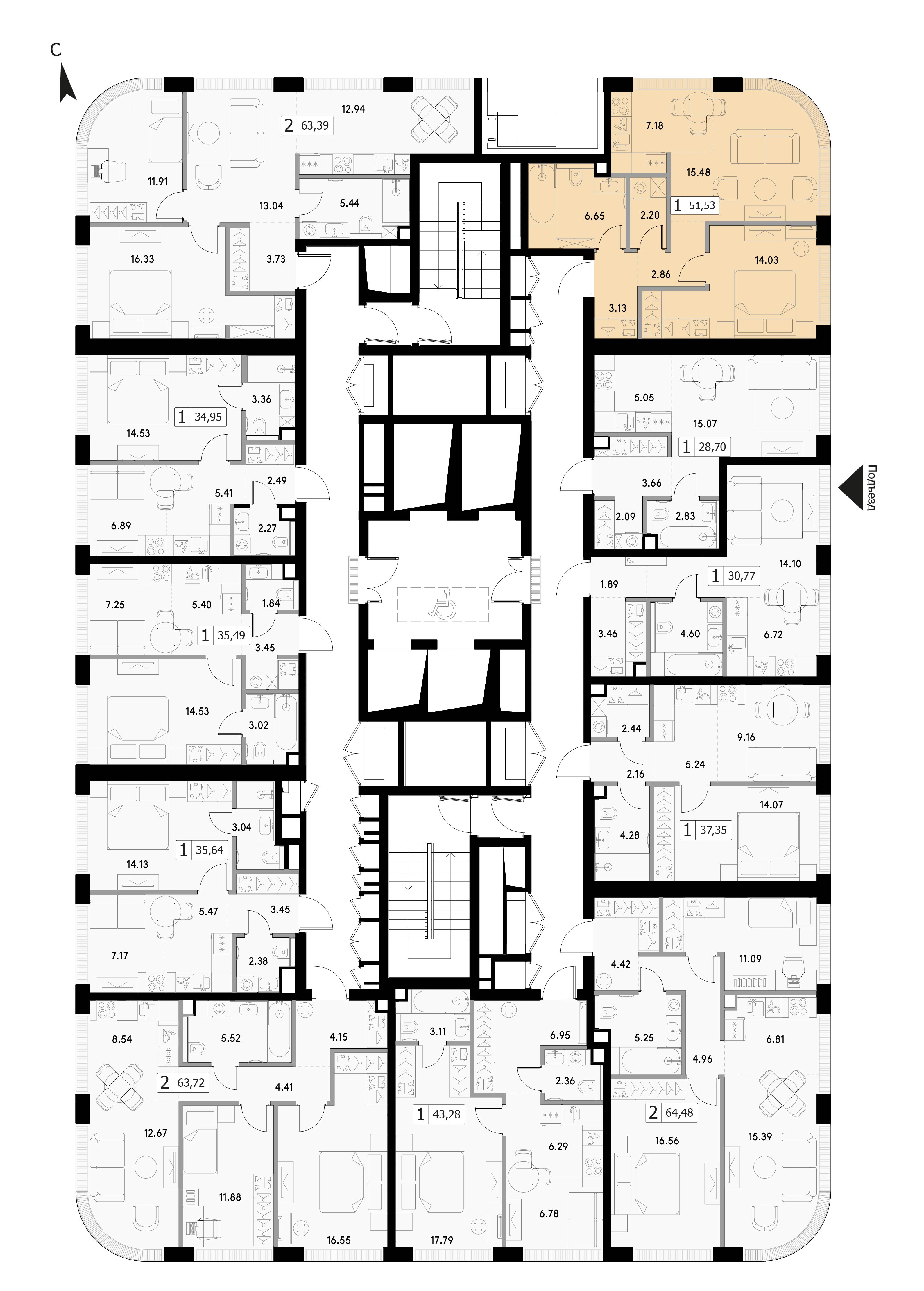 Однокомнатная квартира 51.53 м², 3 этаж, ЖК «ВЕЕР» (VEER)