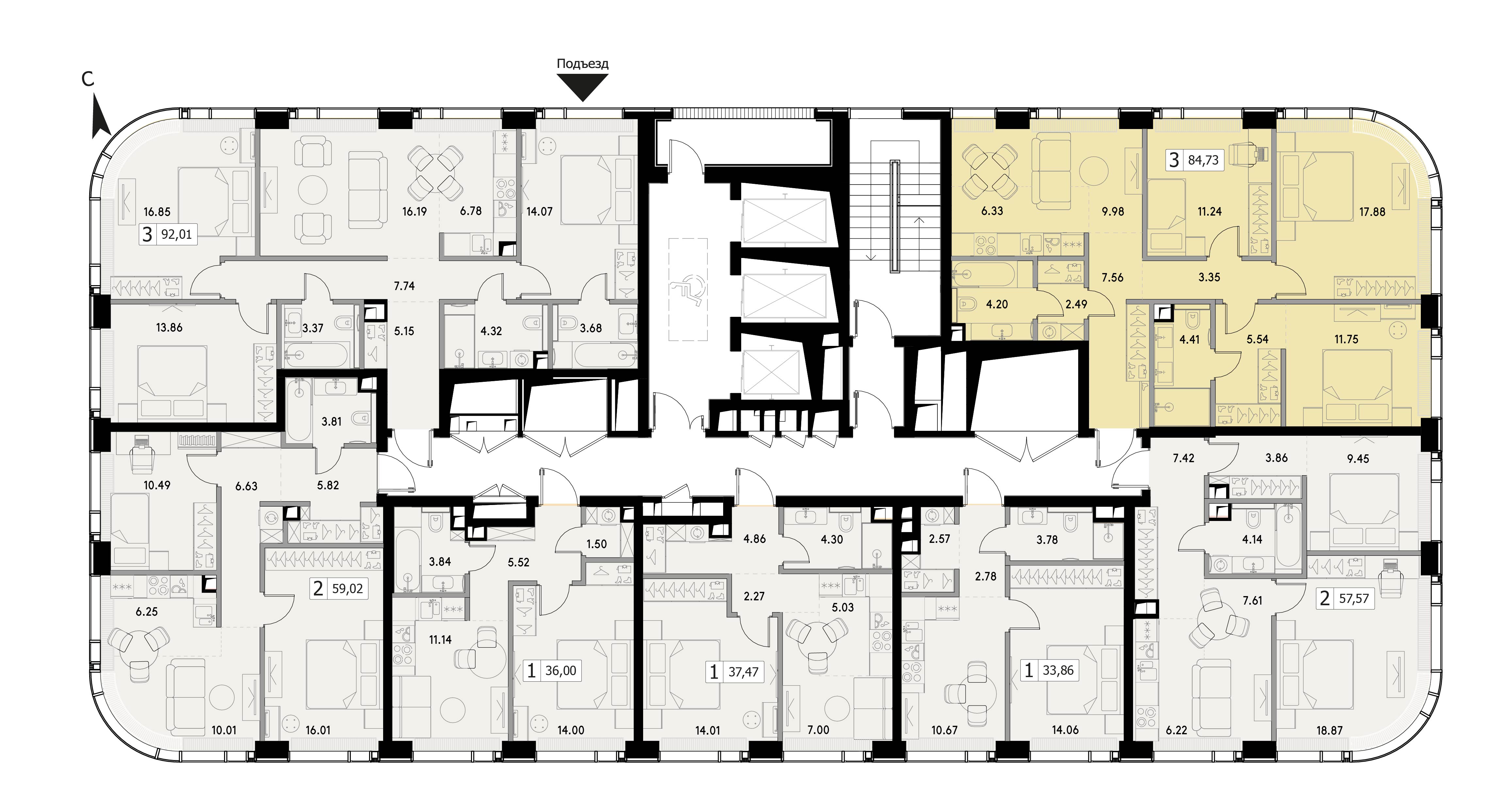 Комфортная трехкомнатная квартира квартира площадью 84.73 м² без отделки. Лот расположен на 23 этаже, корпуса 1.1 ЖК «ВЕЕР» (VEER).Комплекс находится по адресу: г. Москва, ул Верейская. Это соединение удобной инфраструктуры городской застройки и зеленых зон отдыха.