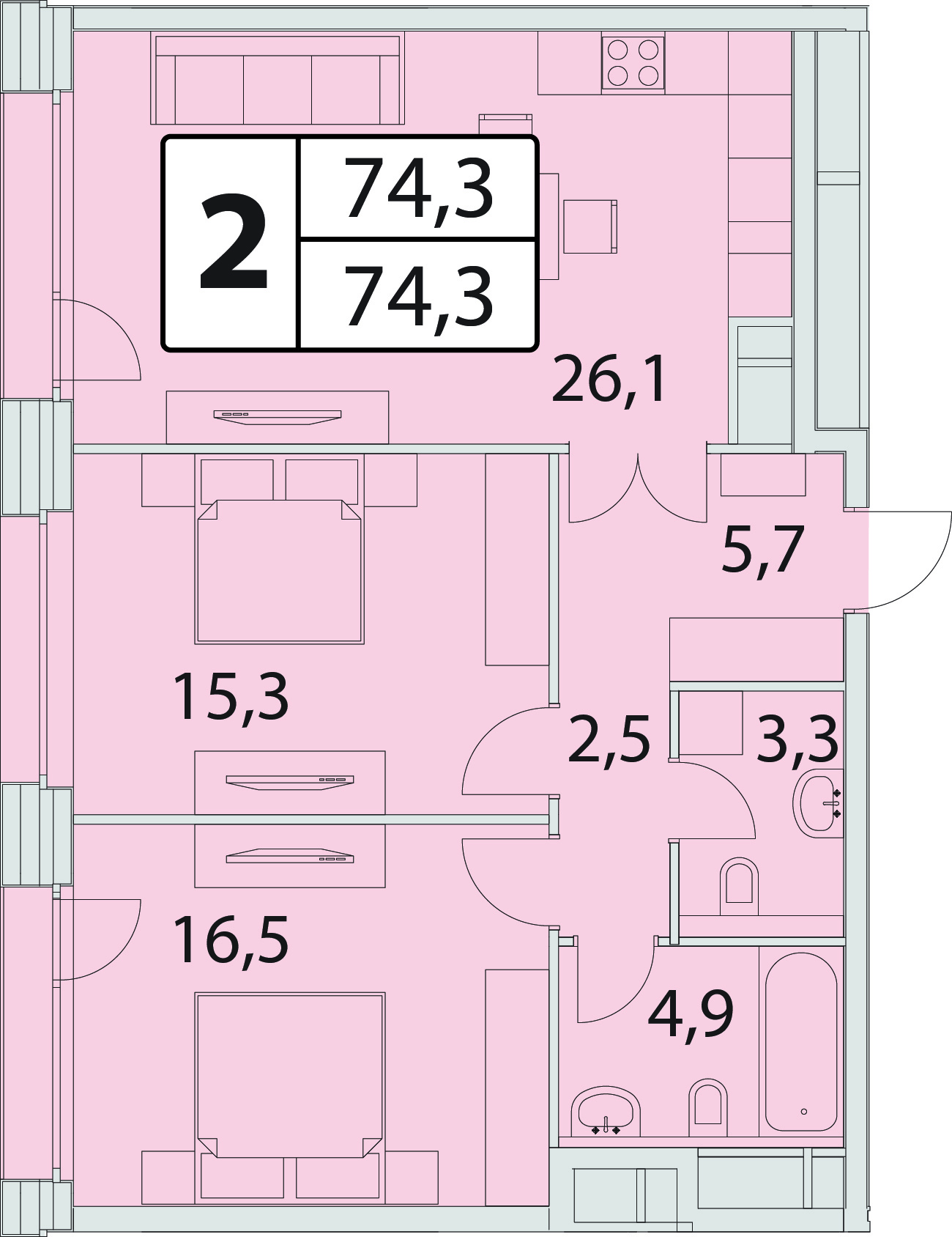 Двухкомнатная квартира 76.8 м², 20 этаж, ЖК «ЛАЙФ-Кутузовский» (LIFE-Кутузовский)