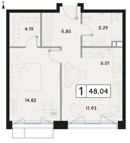 Однокомнатная квартира 47.21 м², 10 этаж, ЖК «МЫС»