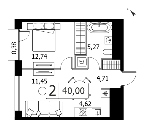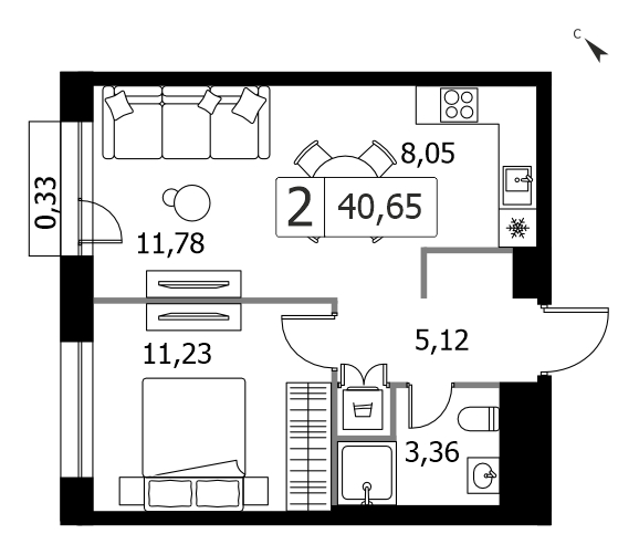 Однокомнатная квартира 39.1 м², 4 этаж, ЖК «ЛАЙФ Варшавская» (LIFE)