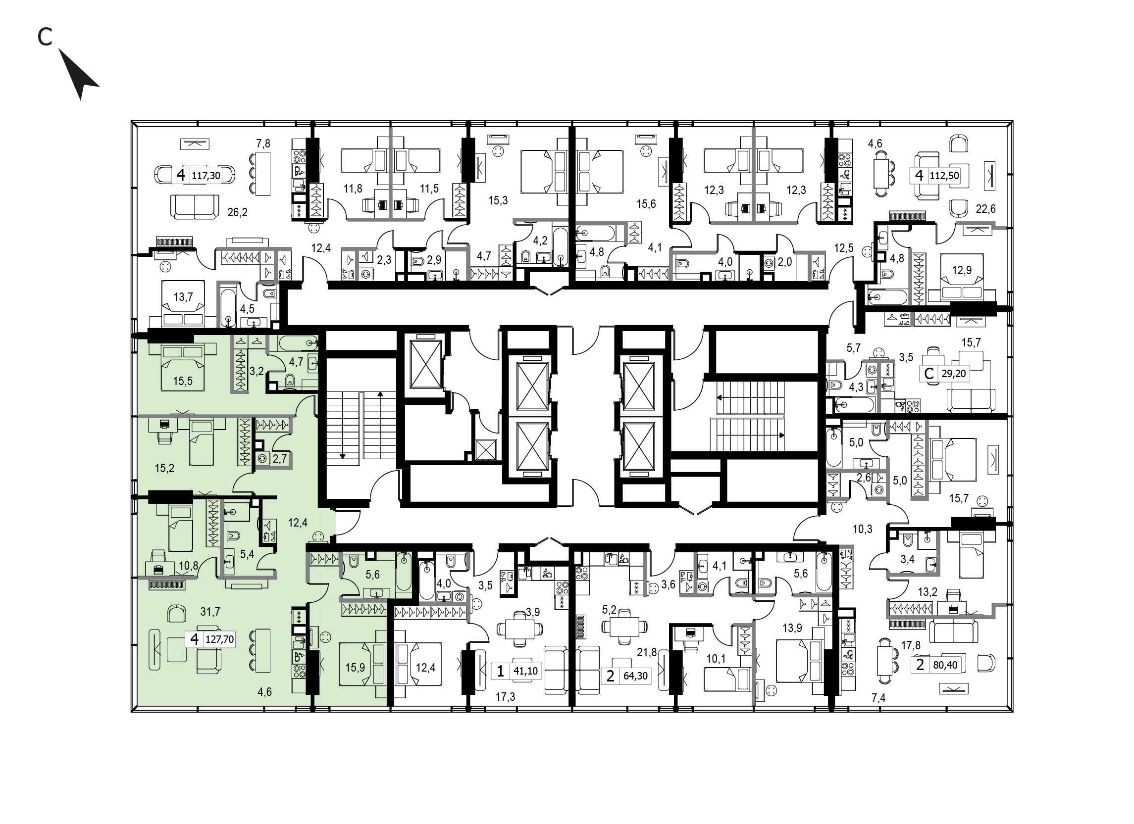Четырехкомнатная квартира 125.2 м², 7 этаж, МФК «СЛАВА» (SLAVA)