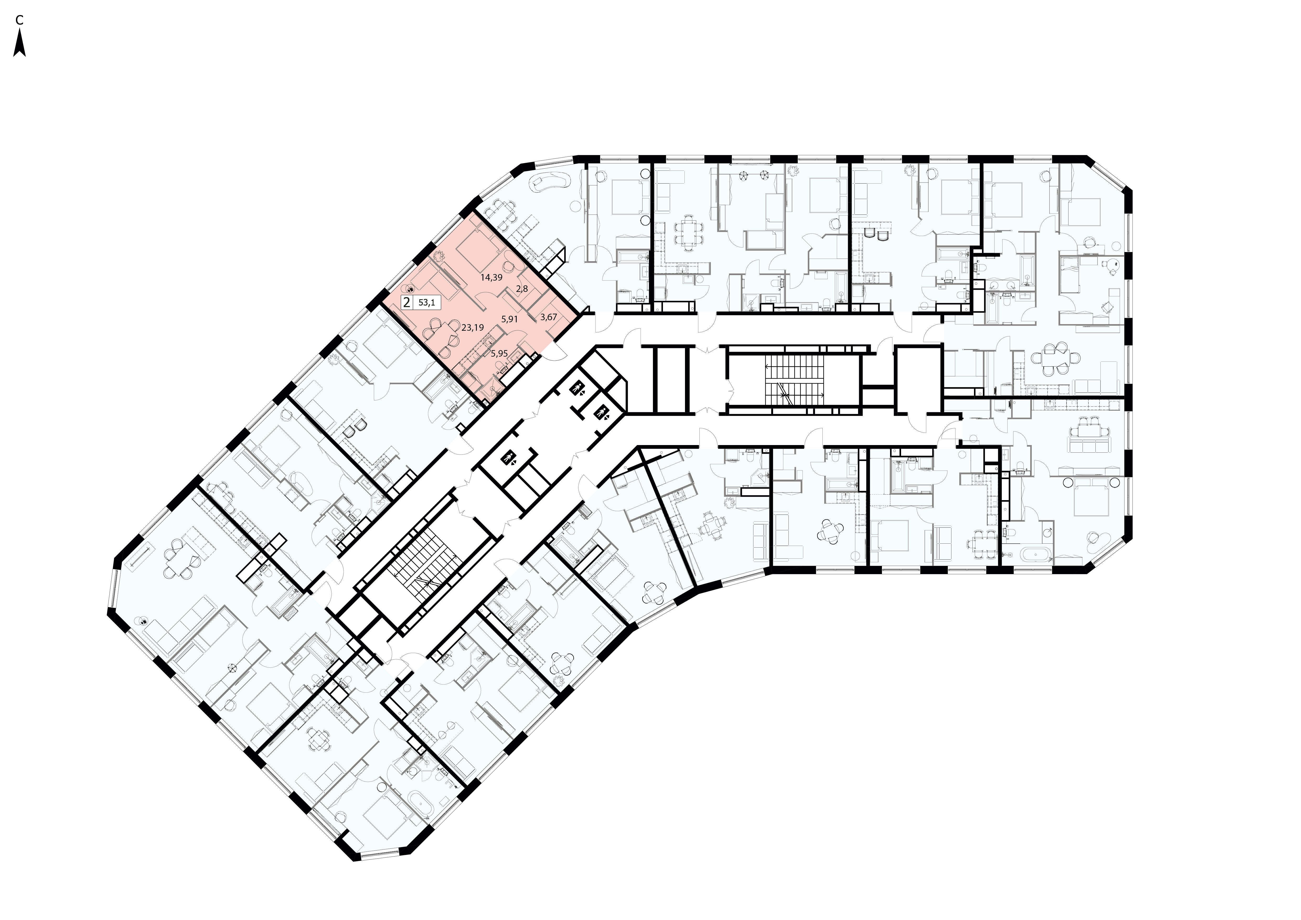 Двухкомнатный апартамент 53.11 м², 6 этаж, Клубный дом «ДЭ ОРО МИЛЛЕ» (D'ORO MILLE)