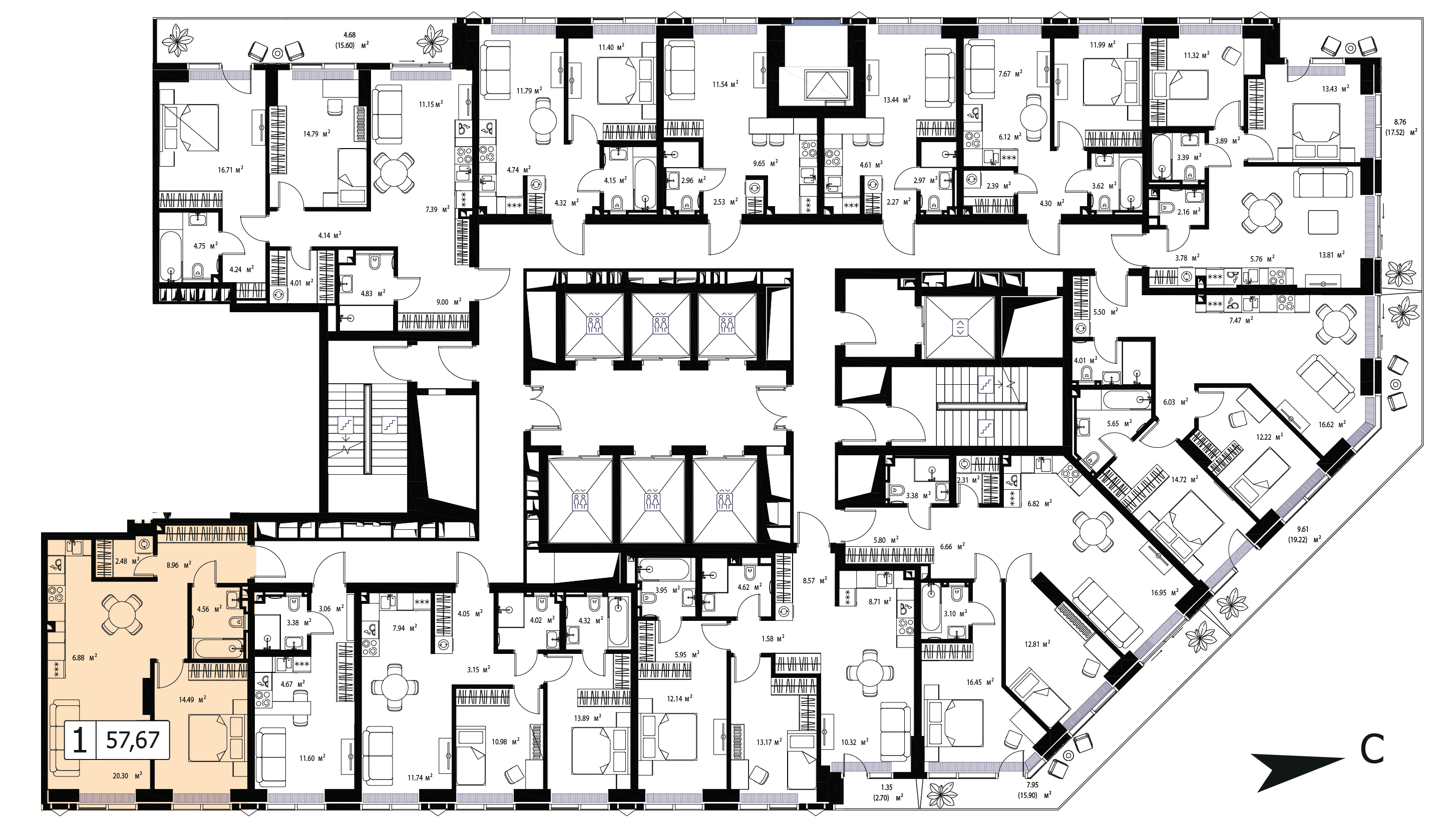 57.67 м²