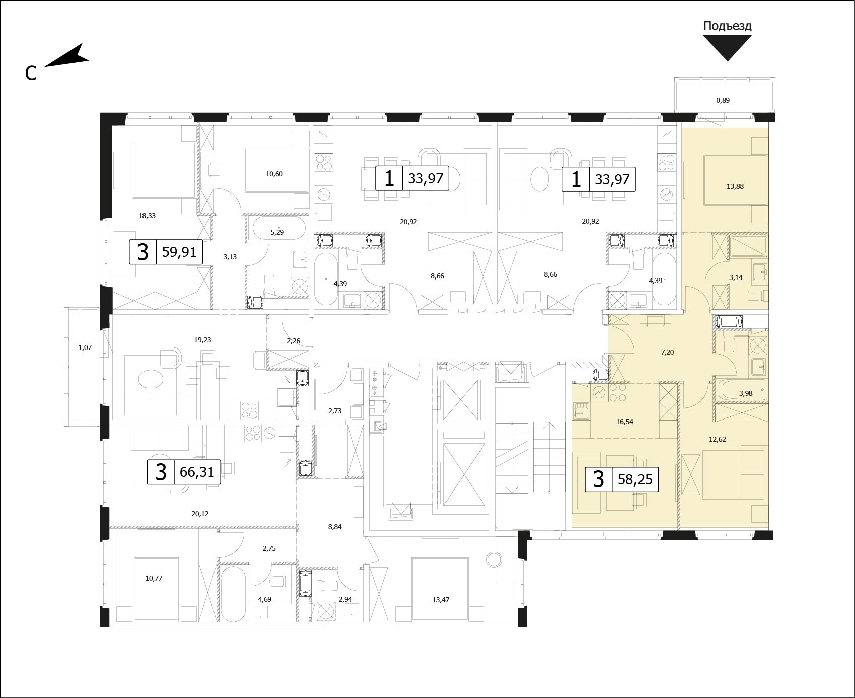 Лот расположен на 9 этаже, корпуса Нестеров ( К.4) ЖК «У реки. Эко Видное 2.0»..