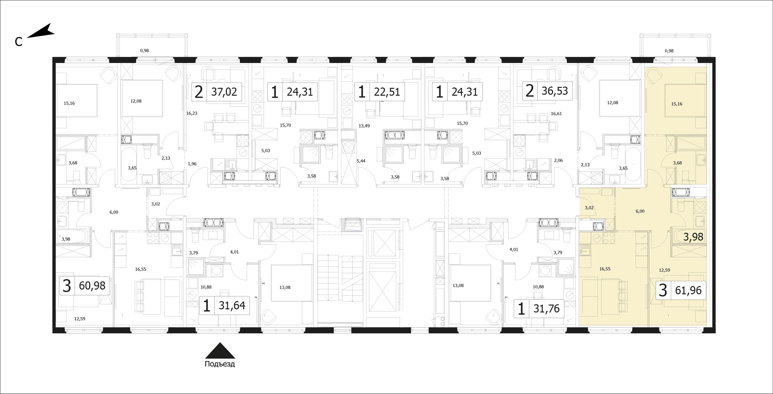 Комфортная трехкомнатная квартира квартира площадью 61.9 м² с отделкой .