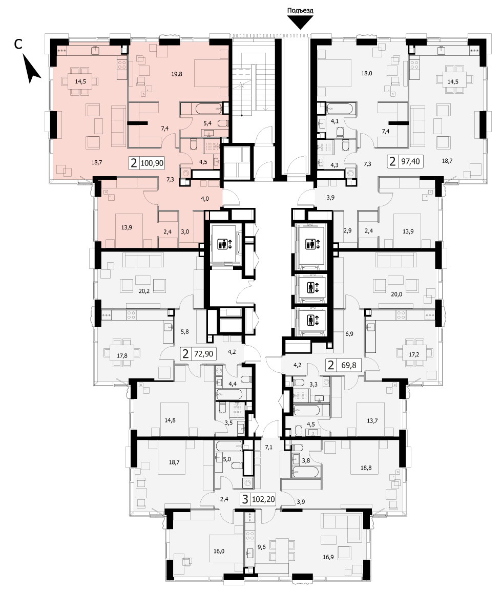 Комфортная двухкомнатная квартира квартира площадью 102 м² без отделки. Лот расположен на 17 этаже, корпуса Rossini корп.1 Клубный город на реке «PRIMAVERA».Комплекс находится по адресу: г. Москва, Волокаламское. Это соединение удобной инфраструктуры городской застройки и зеленых зон отдыха.