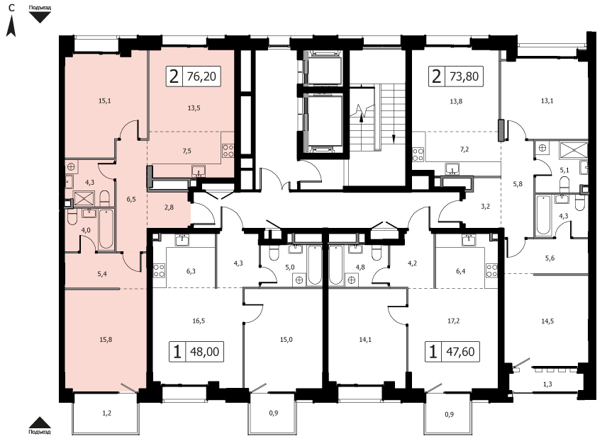 76.3 м²