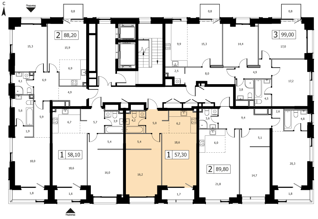 от 99.3 м2