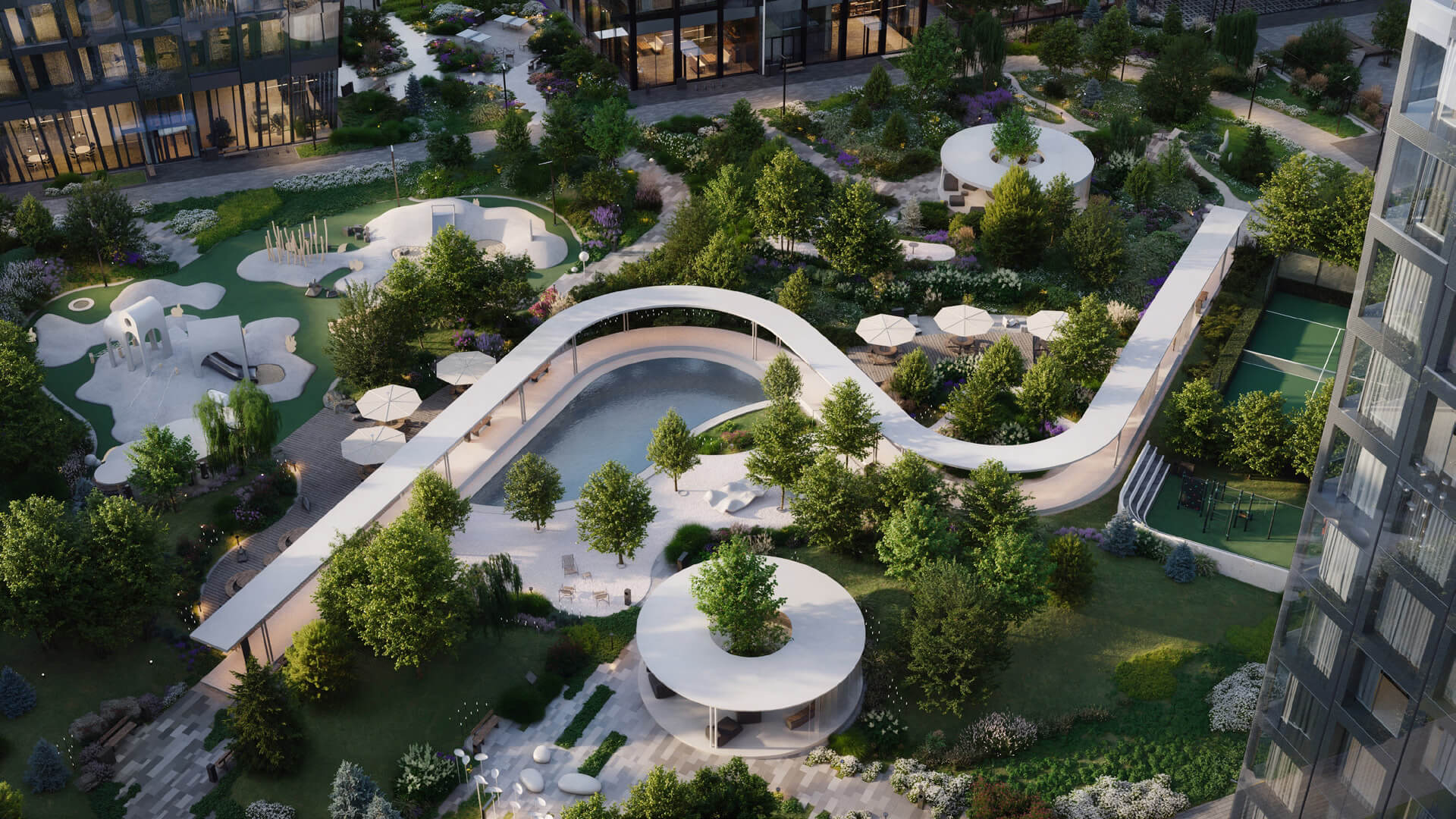 Пространство двора спроектировано таким образом, чтобы жители чувствовали себя максимально комфортно. Это территория, где можно проводить время всей семьёй, заниматься спортом или просто наслаждаться спокойствием вдали от городской суеты.