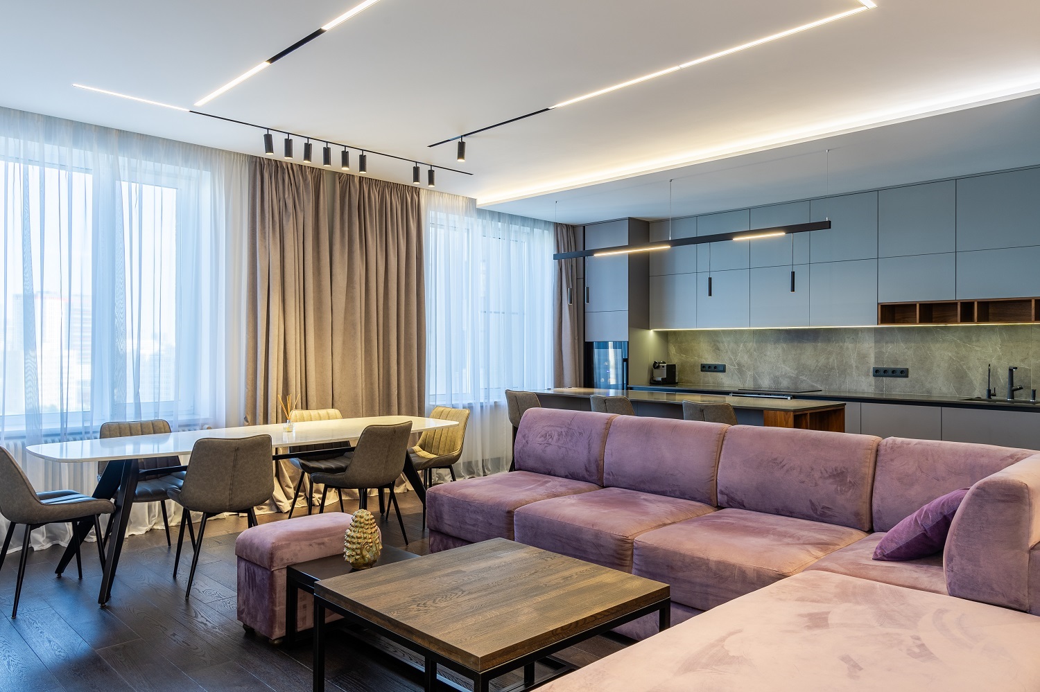 Стильная семейная квартира с панорамными окнами в ЖК «Октябрьское поле»