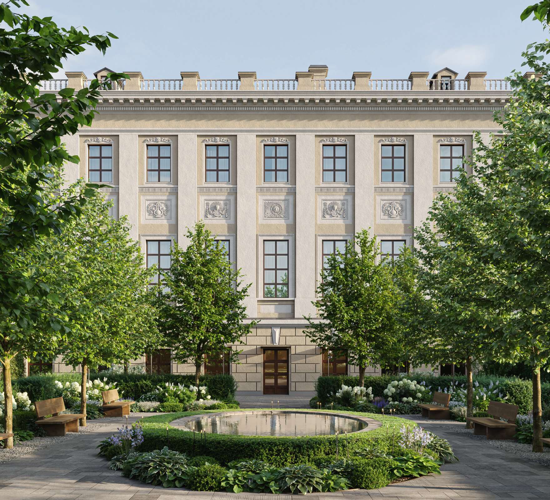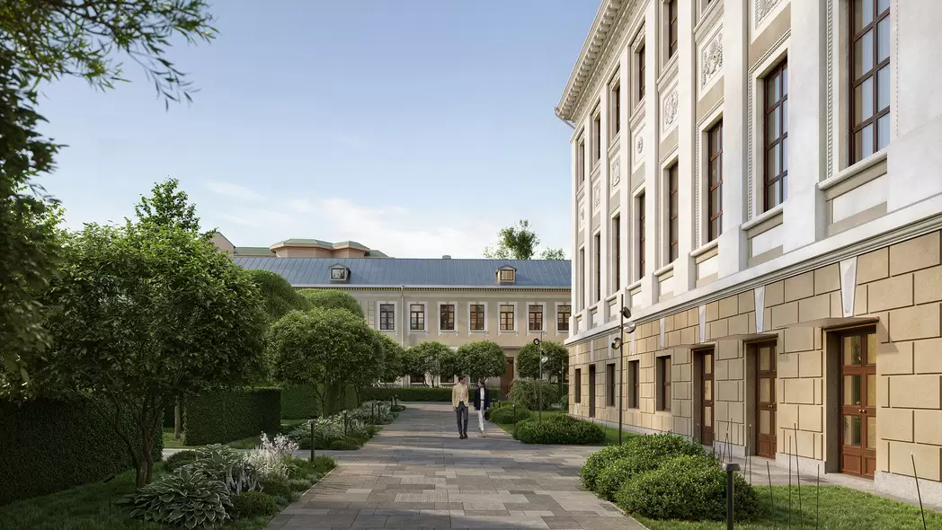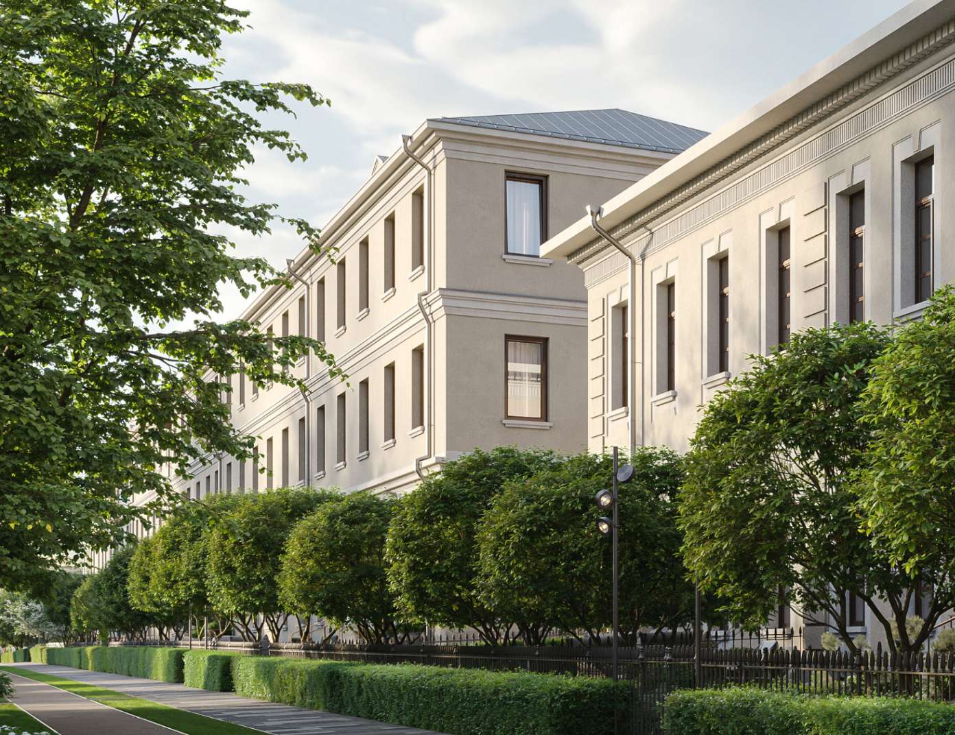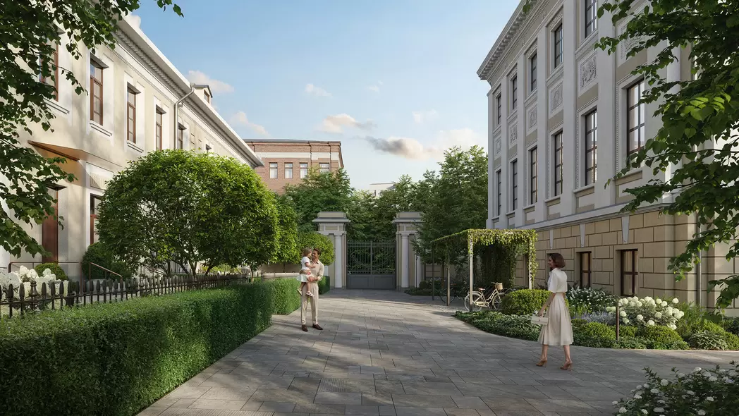 Фасады каждого строения выдержаны в традициях позднего классицизма и создают атмосферу уютного дворянского пространства, которое позволяет насладиться тишиной в центральном районе Москвы.