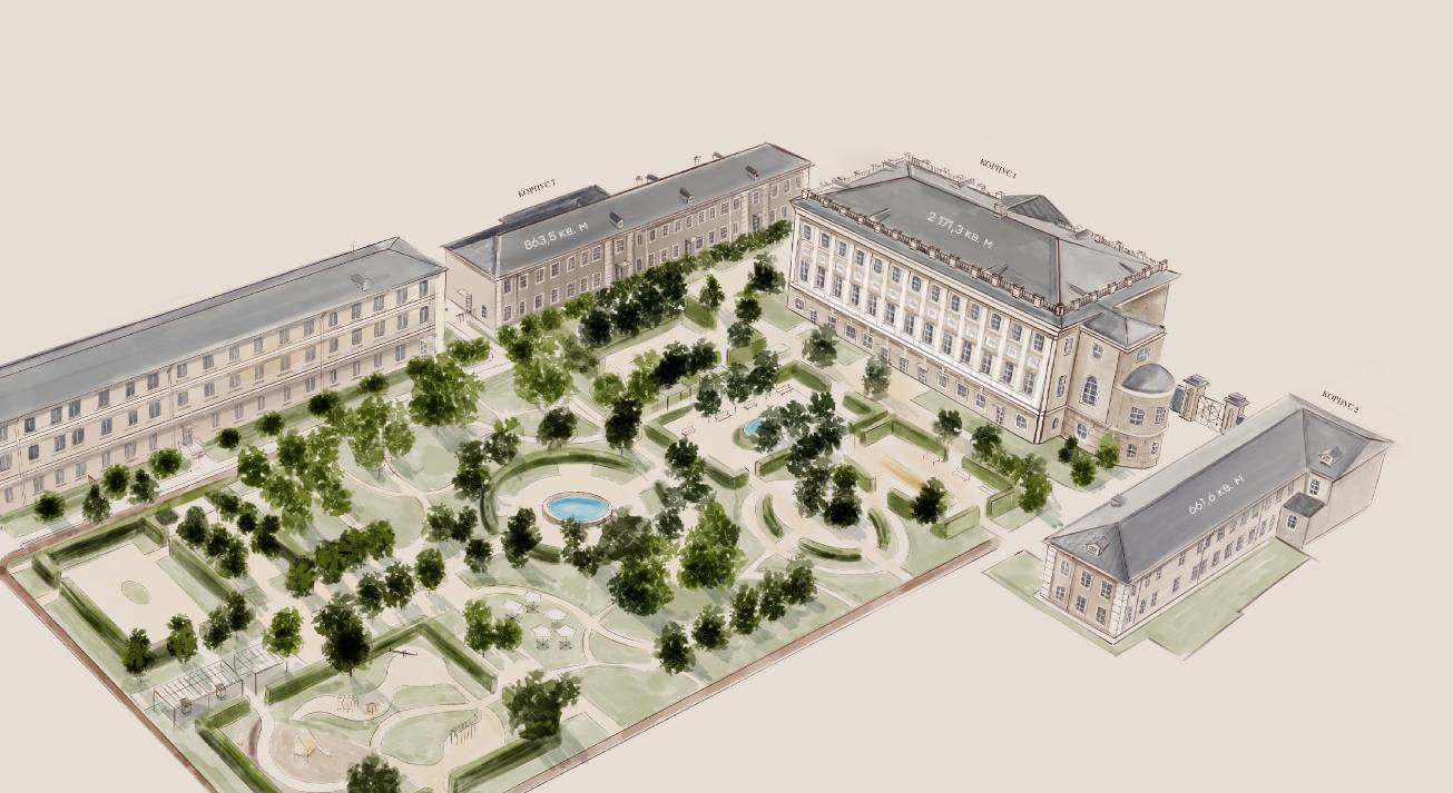 Здания ансамбля спроектировали не по степени значимости, а по роли в общей композиции.