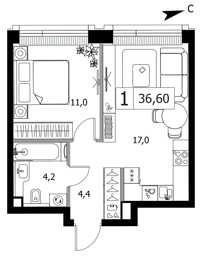 В продаже 1-комнатная квартира с отделкой у метро Тушинская на 30 этаже, Корпус 1.