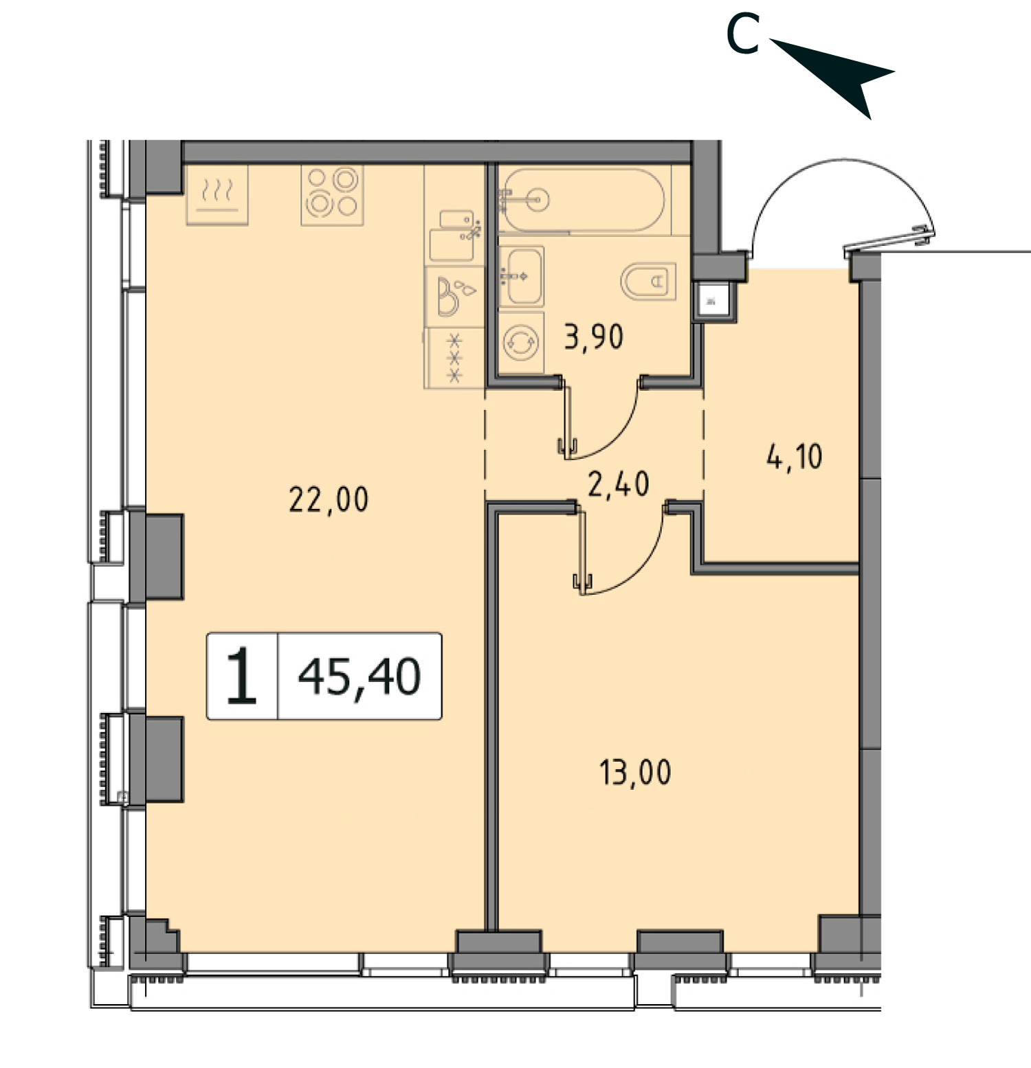 В продаже 1-комнатная квартира без отделки у метро Тушинская на 22 этаже, Корпус 2.