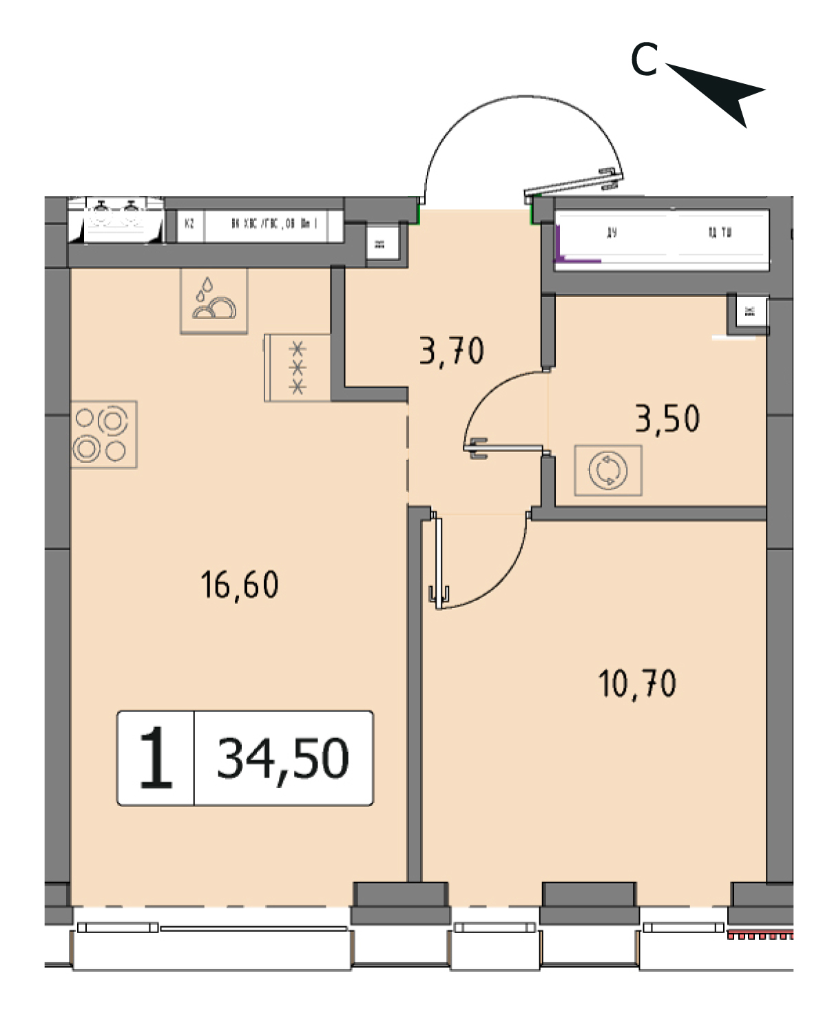В продаже 1-комнатная квартира без отделки у метро Тушинская на 34 этаже, Корпус 2.