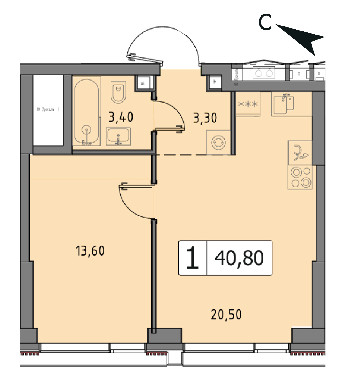 В продаже 1-комнатная квартира без отделки у метро Тушинская на 13 этаже, Корпус 2.