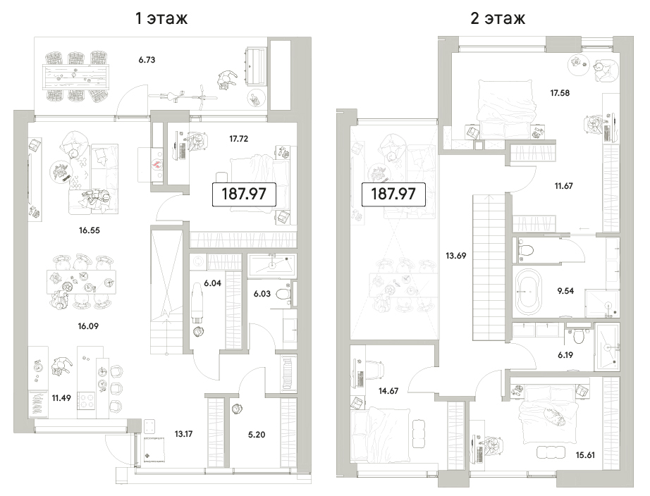 Четырехкомнатный таунхаус 187.97м², 1 этаж