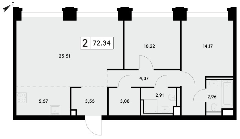 В продаже 2-комнатная квартира без отделки на 26 этаже, Корпус 3. «НОВА» (NOVA) — Первый архитектурный проект в премиальной линейке Samolet Select — совершенной коллекции комфорта, статуса и преимуществ. Каждый день в «НОВА» (NOVA) — это коллекция впечатлений, которые останутся с вами