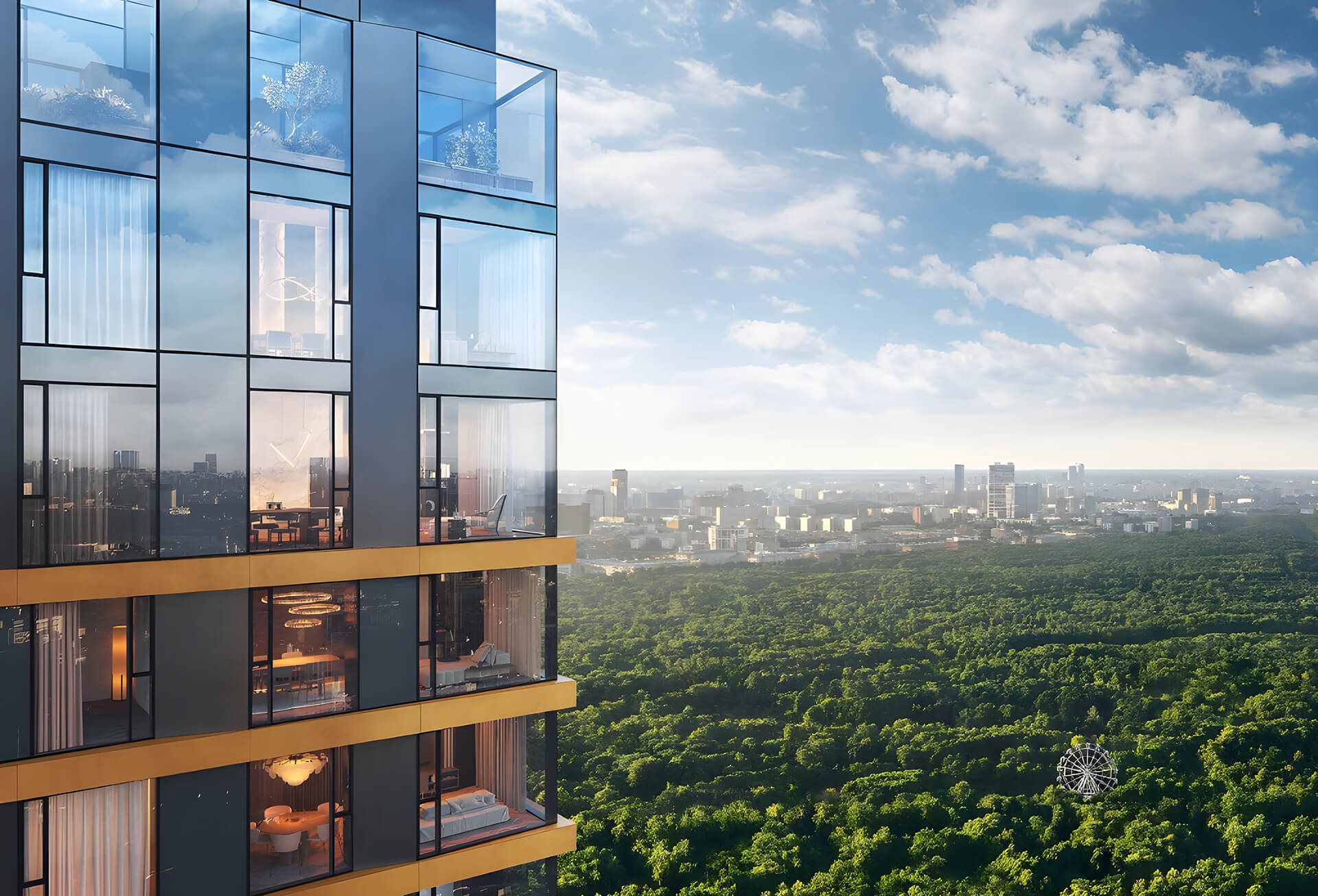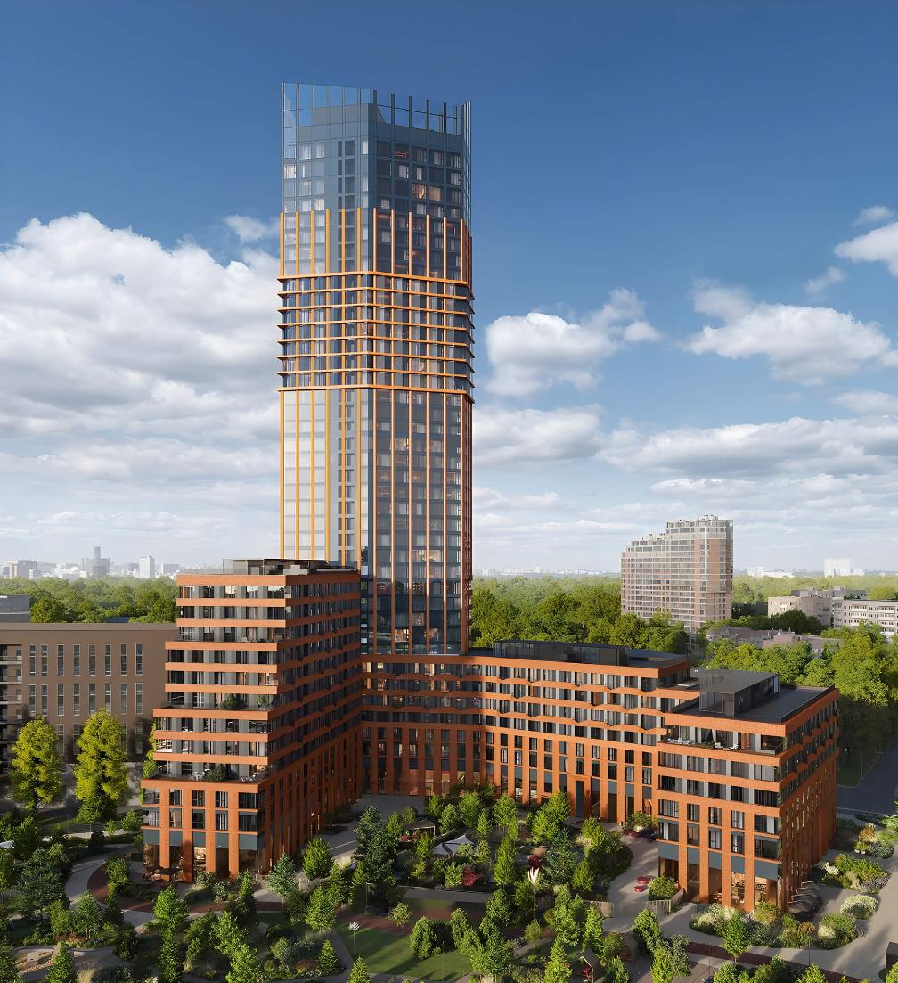 Архитектурное решение квартала построено на принципе разнообразия и визуального баланса. Высотность корпусов варьируется от 6 до 39 этажей, что позволяет сохранить комфортный масштаб застройки и динамичный городской силуэт.
