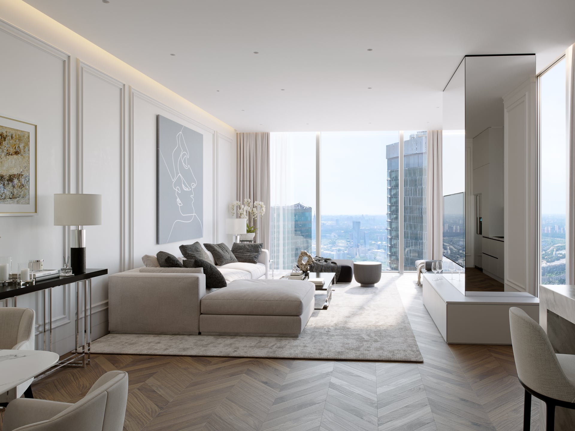 Также можно приобрести апартаменты с отделкой под ключ. Клиенты могут выбрать из нескольких проектов интерьеров, разработанных именитыми британскими дизайнерами из компании Darling Associates.