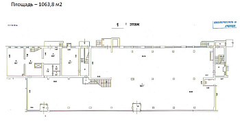 1 этаж- 1063,8 м2, 2- этаж 1232,7 м2,